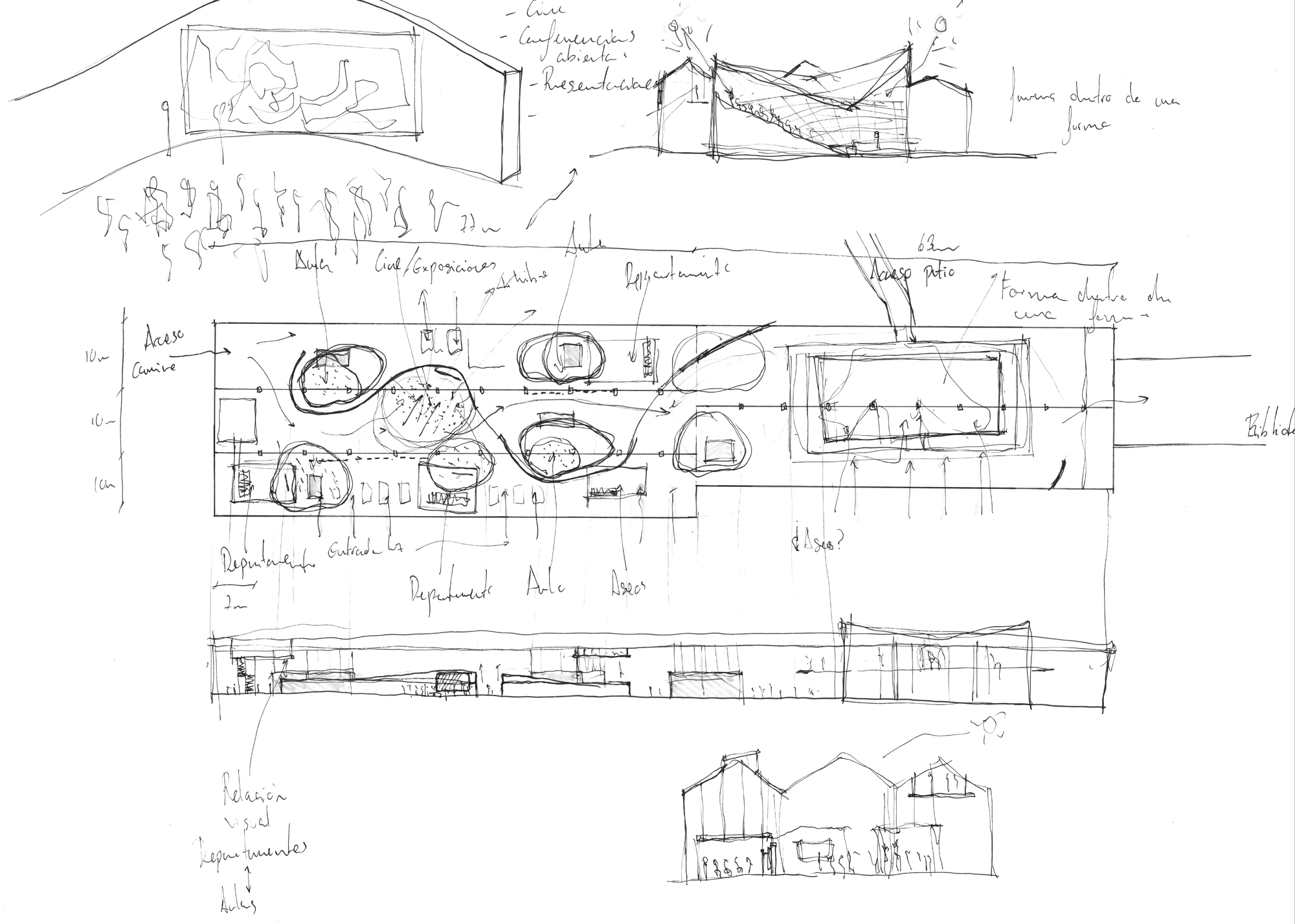 de un programa de aulas y departamentos, auditorio y biblioteca.