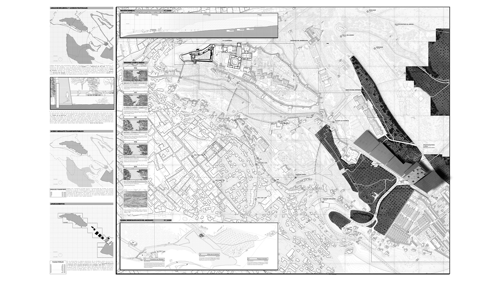 Todos estos elementos se han perdido con el tiempo, desdibujados por las paulativas y desafortunadas intervenciones que han mirado a corto plazo buscando la solución de un problema olvidando la importancia del lugar. El proyecto propone recuperarlos generando un nuevo espacio de reflexión e introspección, aislados de la ciudad, desconectada y ajena a la biblioteca, donde hic sunt tumultum.